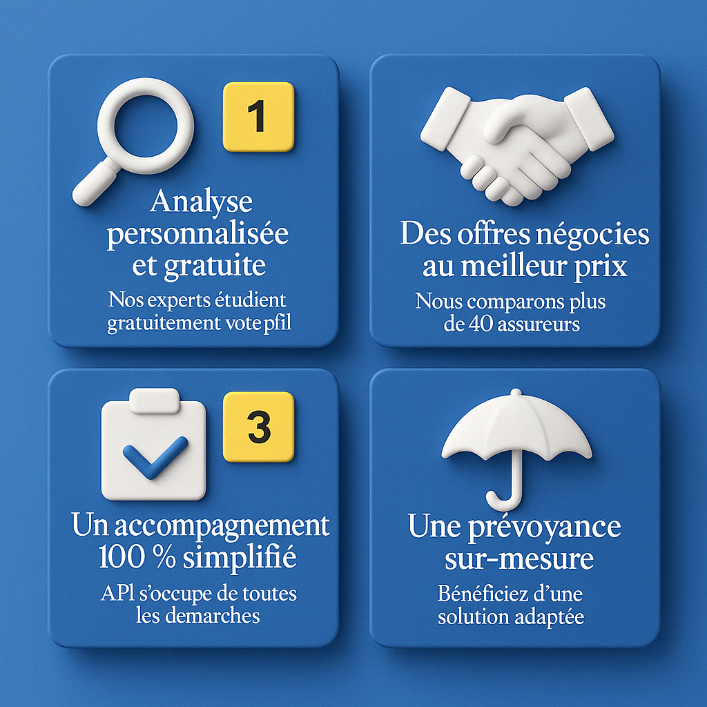 API prend en main l’ensemble des démarches : résiliation auprès de votre assureur actuel, transmission des documents et souscription des nouvelles garanties.